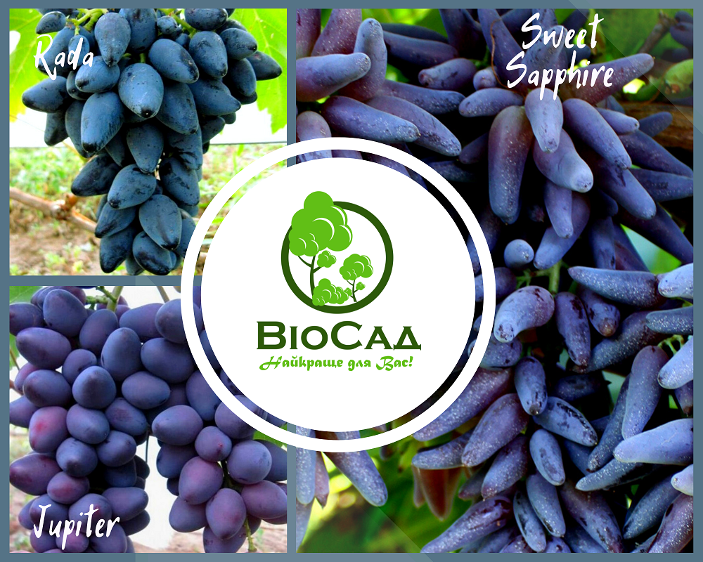 До комплекту входять три високоврожайні сорти винограду, раннього та середнього терміну дозрівання.